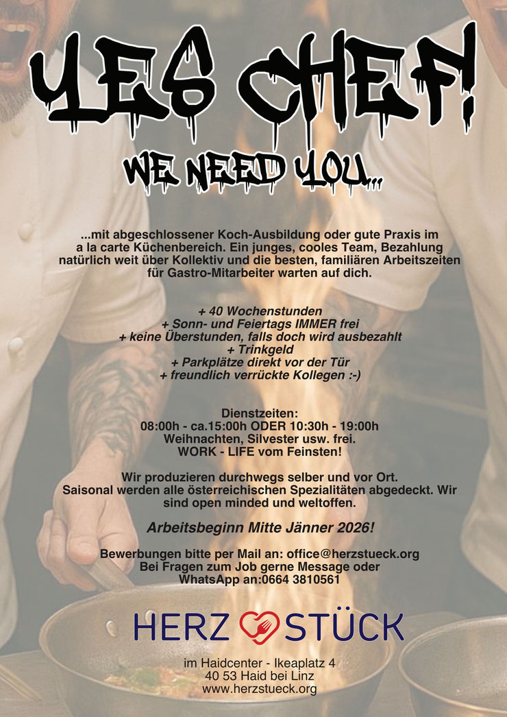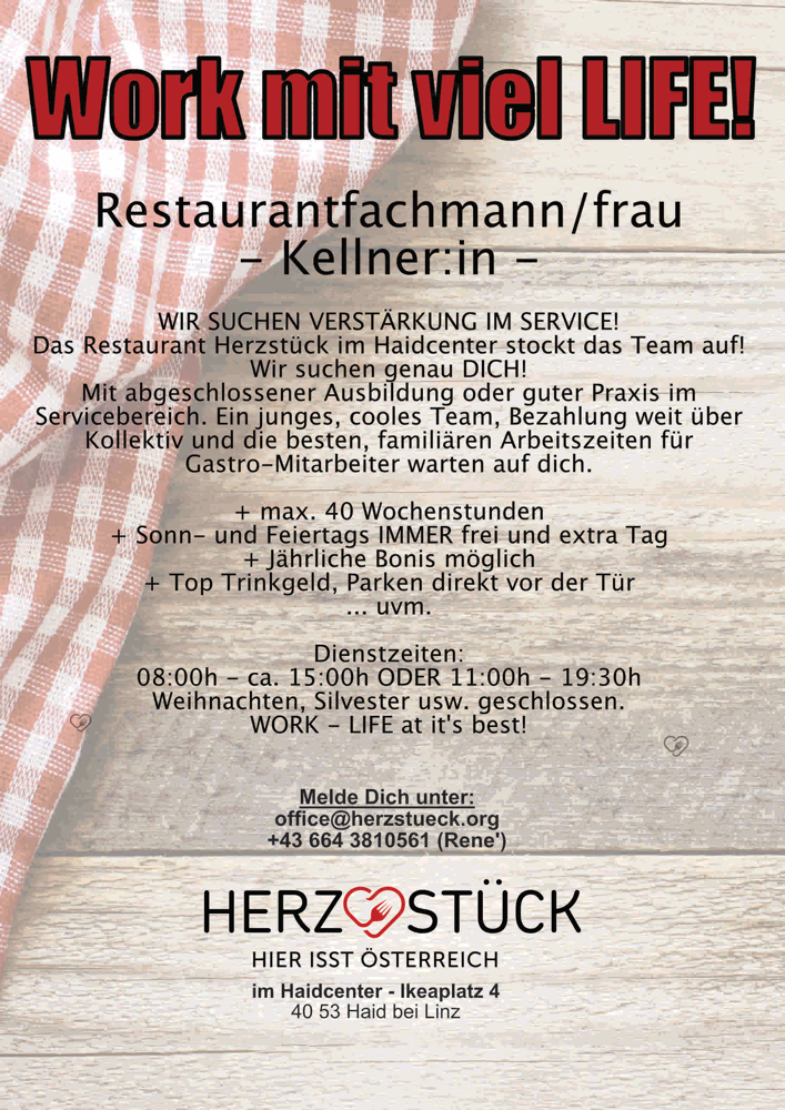 Das Restaurant Herzstück im Haidcenter stockt das Team auf!